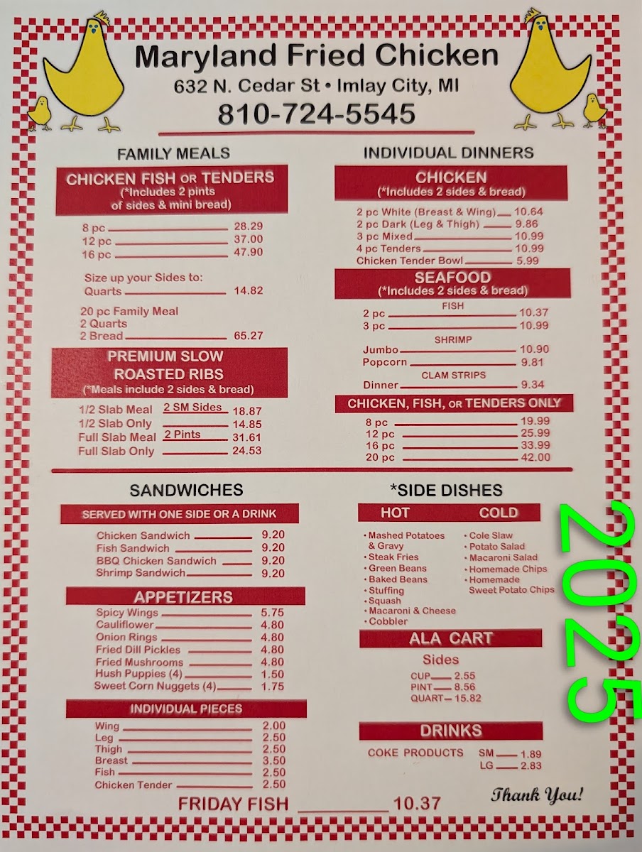 Timmer's Maryland Chicken Menu