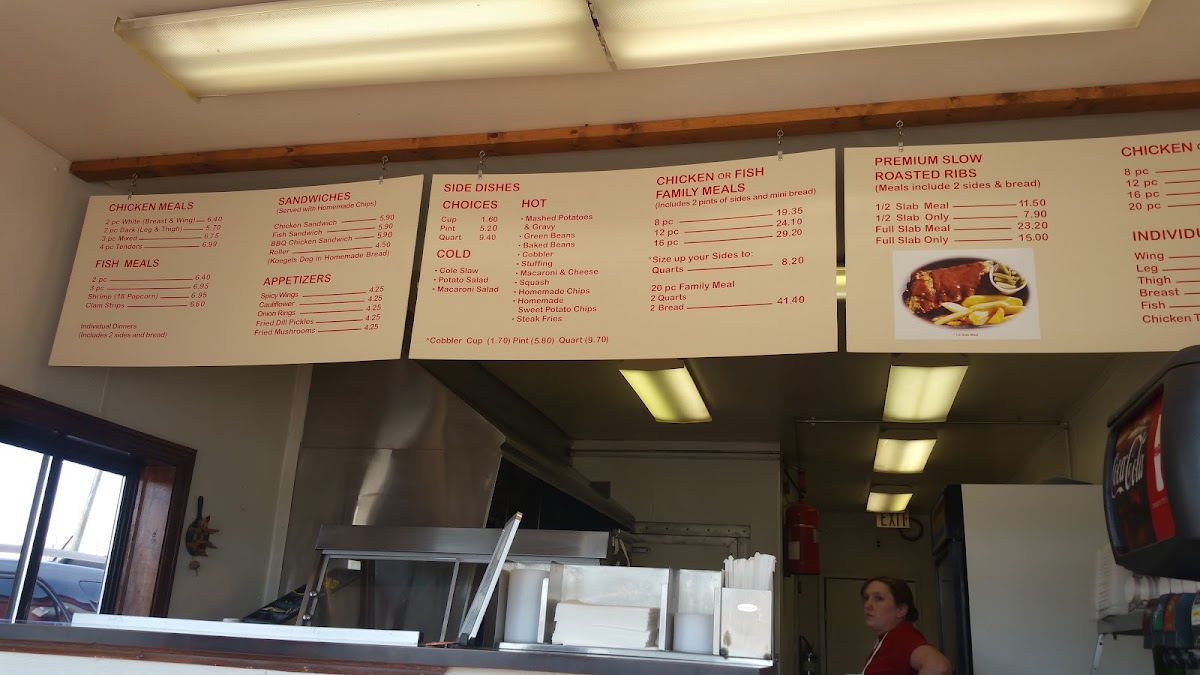 Alongside individual chicken pieces, tenders, and wings, the menu features traditional accompaniments such as fried mushrooms, onion rings, and the occasional seasonal addition. Beverage options remain classic and refreshing, with cold Coke products offering a familiar complement to the fried favorites.